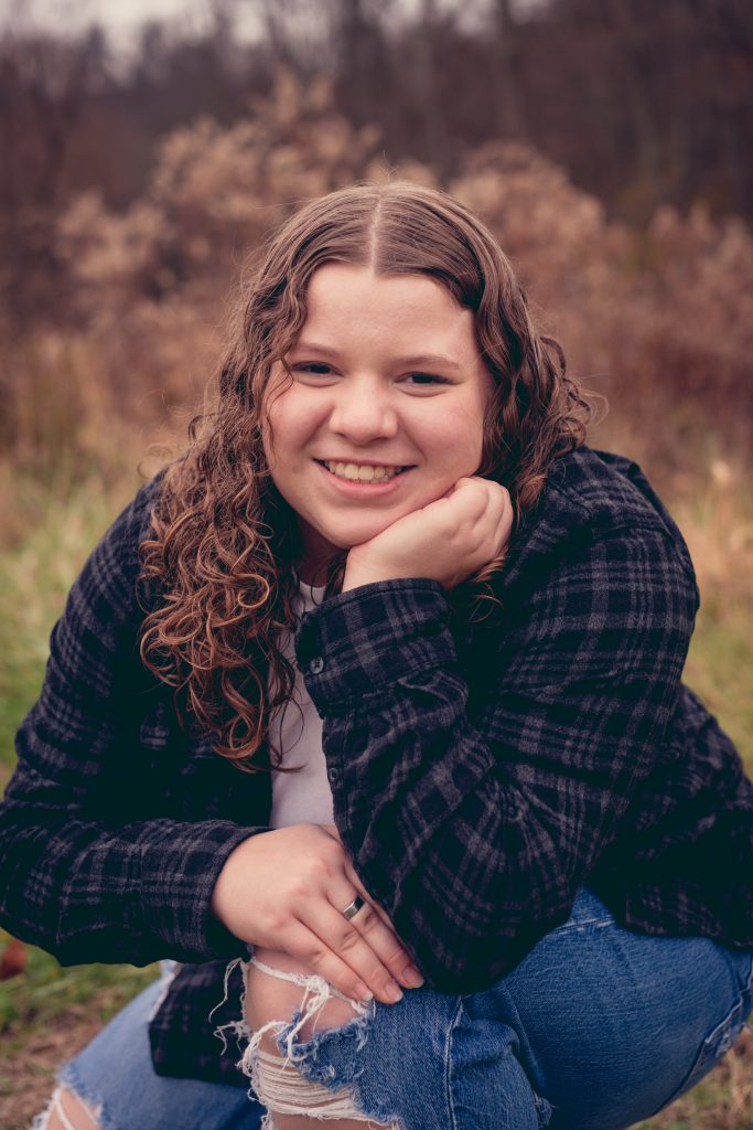 Outside of school, she works at the Frederiktown Butcher Shop, volunteers in her community, and enjoys crocheting, playing guitar, and spending time with her family.
