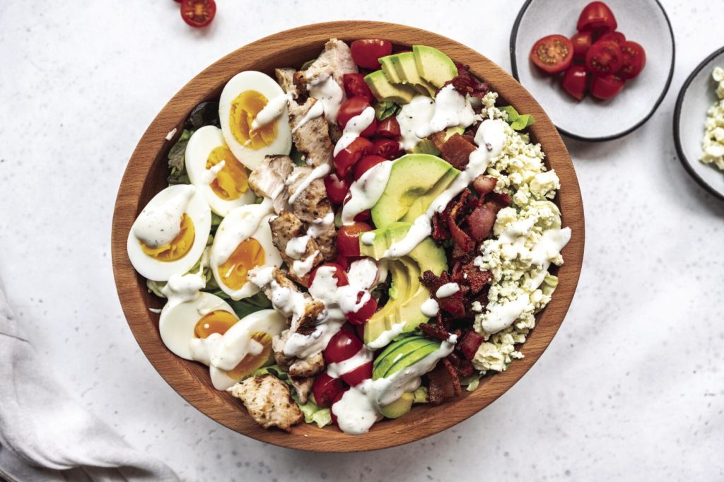 Part of the appeal of dishing up a homemade salad is the unlimited options you have at your fingertips to make the bowl of greens uniquely “yours.” For many, this means one thing: the more toppings, the better. With grilled chicken, crispy bacon, tomatoes, ripe avocado, hard-boiled eggs, blue cheese and a bed of fresh lettuce, this classic Cobb Salad offers an ideal lunch or even a quick family meal.