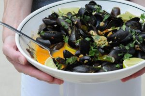 Looking for a seafood dish with a kick?Coconut curry Thai Mussels brings together such Asian cooking favorites as coconut milk, red curry paste, lemongrass and lime in a tasty dish that Shereen Pavlides was inspired to create after having a similar one at a now closed Jersey Shore hotel ...
