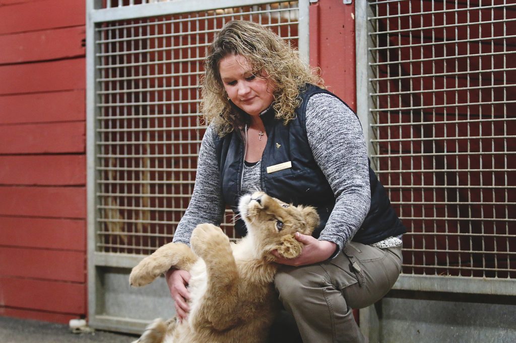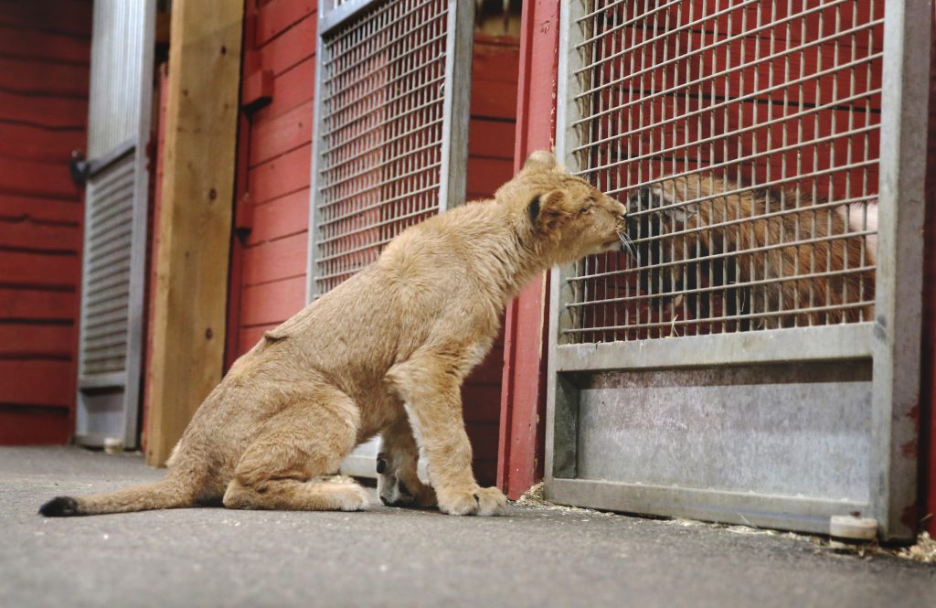 Kiwi started out with a bottle phase and gradually will be worked into the lion population. She’ll be used to humans, but not domesticated.
