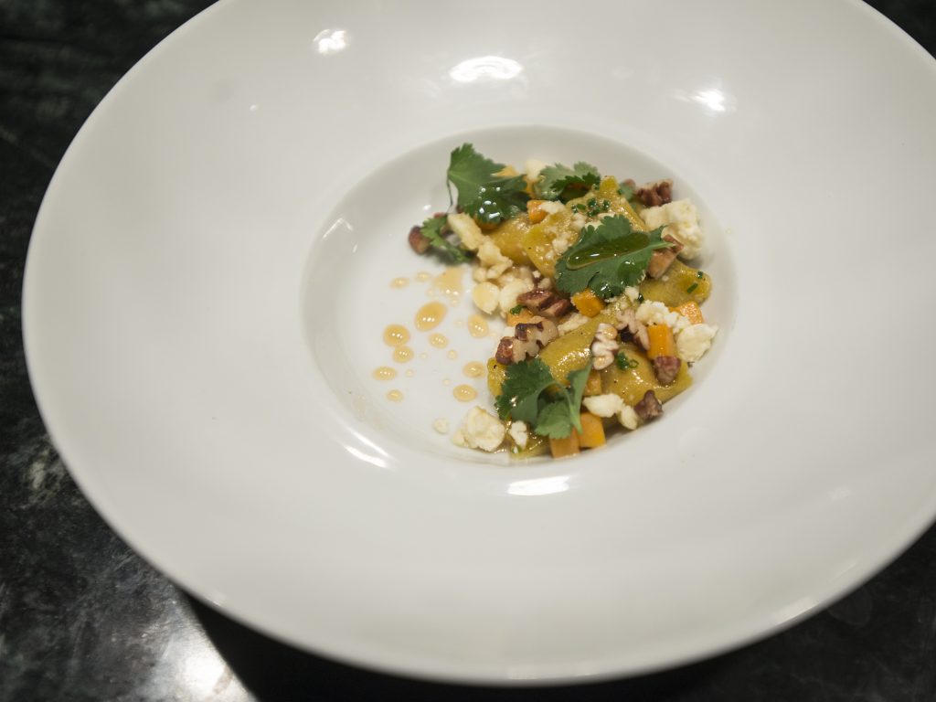 Butterworth’s menu, which had to be pre-approved, ranged from buckwheat-goat pierogi to represent the region to waguy beef from Japan. Other dishes included chilled squash soup while dessert was posset with yizu-infused local cream, black sesame granita, five-spice bubbles and burnt orange. Butterworth pre-selected wines served by Nemacolin’s food and beverage director.