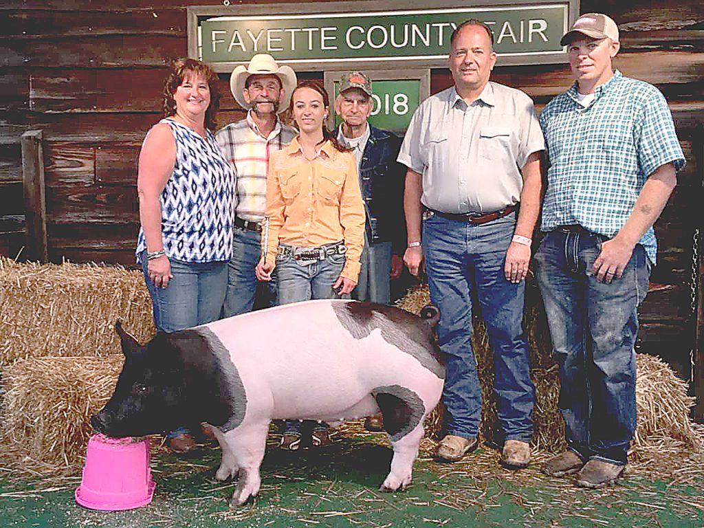 The Breakiron family is completing 52 consecutive years of participating in 4-H livestock shows this year at the Fayette County Fair in Dunbar Township. Wendell Breakiron, of Hopwood, center, started his four children in 4-H in 1966 and several of his grandchildren followed. The family finishes this year as Wendell's granddaughter Toni Marie DeCarlo, of New Salem, completes her time in 4-H. Pictured are (from left) Charlotte DeCarlo, of New Salem, Randy Breakiron, of Hopwood, Toni Marie, Wendell Breakiron, Tony DeCarlo and Brandon Bryner of Normalville, who is breeder for Toni Marie's pig in the foreground. Toni Marie also shows a 4-H market steer and participates in the 4-H Livestock Auction. Wendell, 83, said, “It’s just like it started yesterday.''