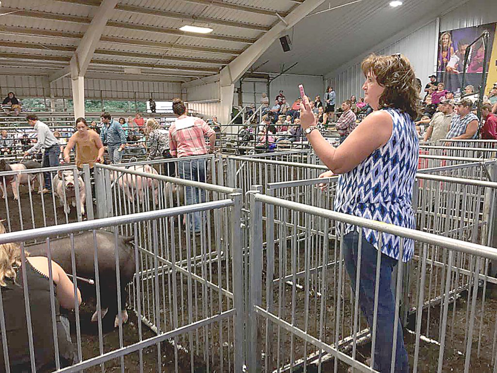 Charlotte DeCarlo, of New Salem, takes photos of her daughter, Toni Marie, competing in the 4-H market swine show at the Fayette County Fair. Toni Marie is completing 4-H, ending 52 consecutive years of participating in 4-H livestock shows by the Breakiron family. Charlotte's father Wendell Breakiron, of Hopwood, started his four children in 4-H in 1966 and four grandchildren followed. Charlotte said, "I've cried all week. This truly has been our life.''