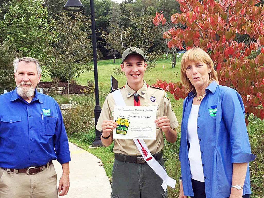 They included restoring the bioswales at Ohiopyle, which he is also using as his Eagle Scout project; a hawk count on Chestnut Ridge and research projects to restore the understory at Ohiopyle State Park Kentuck Campground and remove invasive water plants from Cranberry Glade Lake in nearby Somerset County.