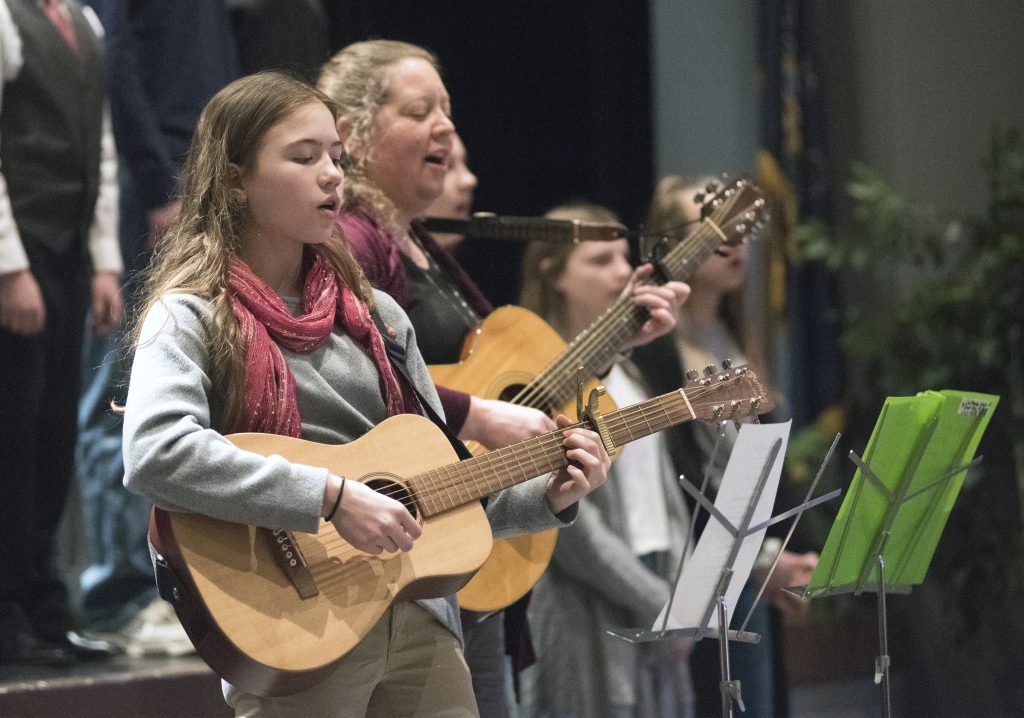 Approximately 20 students from Calvary Chapel Christian School in Brownsville performed a medley. Students at the K-12 school also created a slideshow presentation denouncing hate and promoting love, peace, respect and tolerance that displayed on large projector screens in the Performance Center throughout the duration of the event.