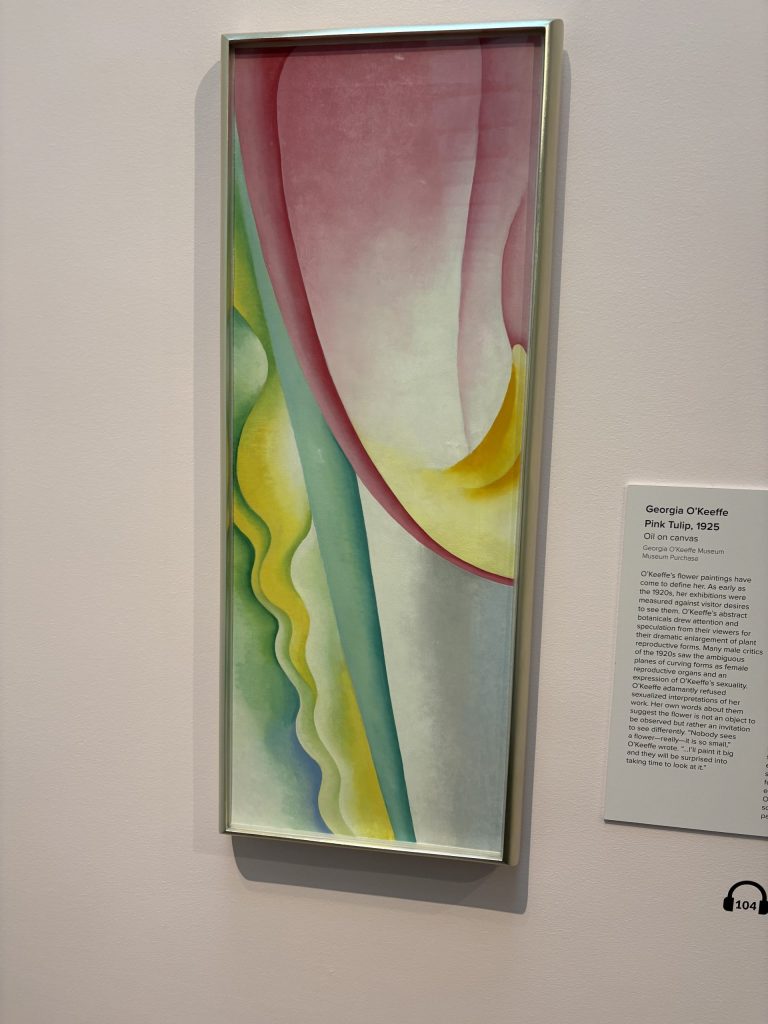 The next morning, we departed for Santa Fe and arrived minutes after the Georgia O’Keeffe Museum opened for the day. We were rewarded with an uncrowded viewing experience of some of the greatest works of this famous American artist. O’Keeffe began her career in New York City before discovering the beauty of New Mexico. Her earlier paintings featured large colorful close-ups of flowers. Later, she would paint the landscapes surrounding Santa Fe and Taos in her distinctive style.