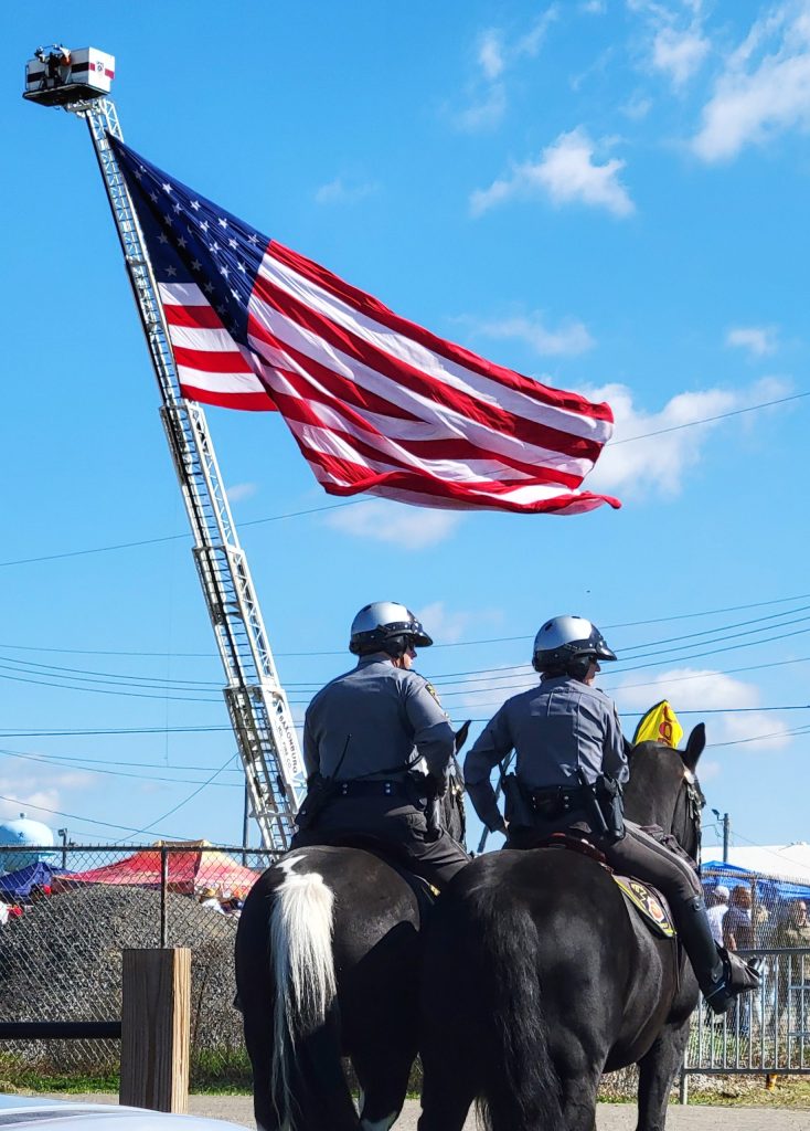 Security was understandably heightened with drones and helicopters circling above and police counter snipers positioned on all nearby buildings, including the one the shooter was perched atop in July. Numerous Pennsylvania State Police troopers were stationed around the fairgrounds, including some mounted on horseback.