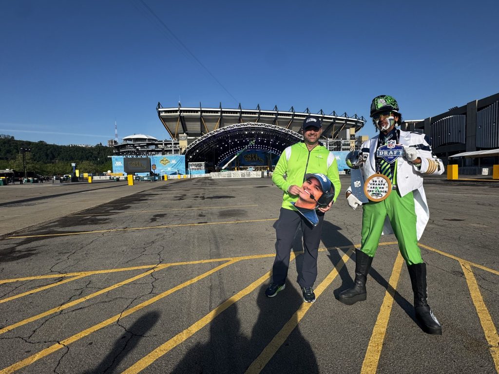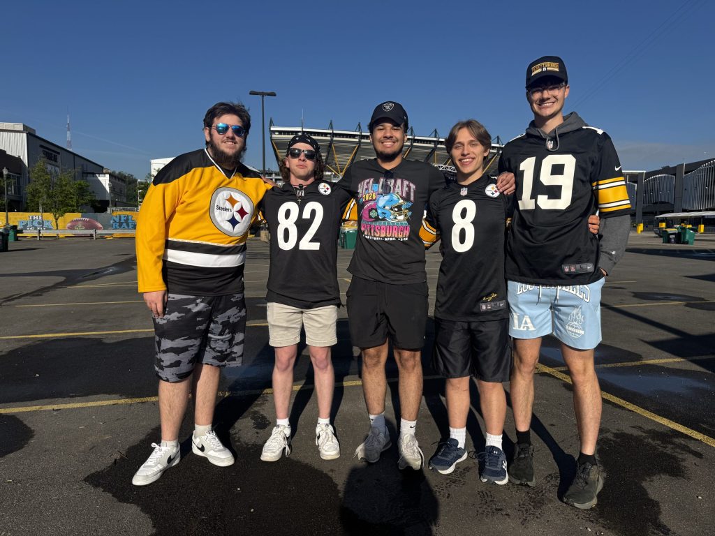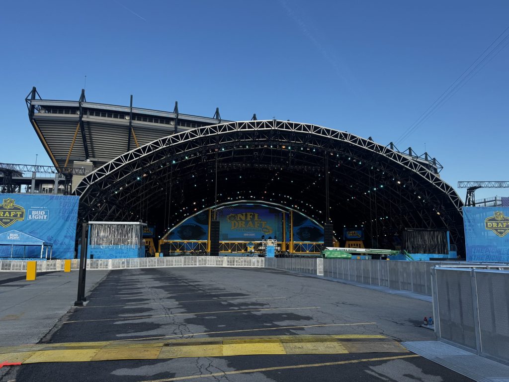 Our intrepid reporter Karen Mansfield was up before dawn to make the trek into Pittsburgh to talk to fans gathering for the first day of the 2026 NFL Draft. She arrived early to capture some photos before the thousands descend upon the North Shore in advance of tonight’s festivities, which get underway at 8 p.m. Check back throughout the day for more photos.