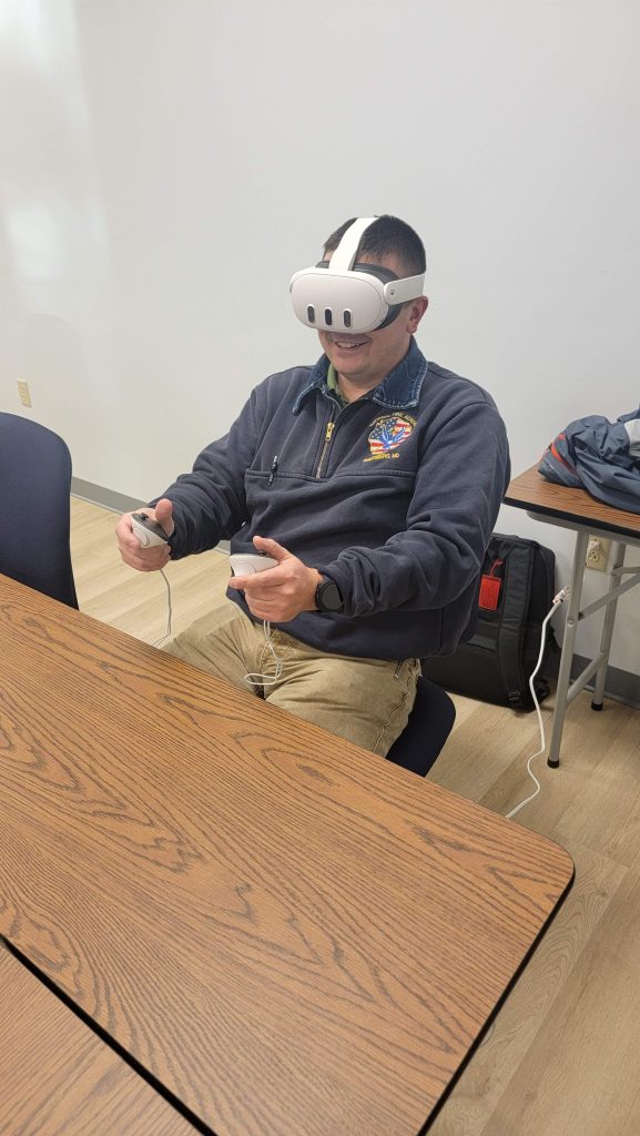Using the VR controllers as a steering wheel, drivers can get a sense of how disruptive a snow squall can be, and how best to avoid an accident.