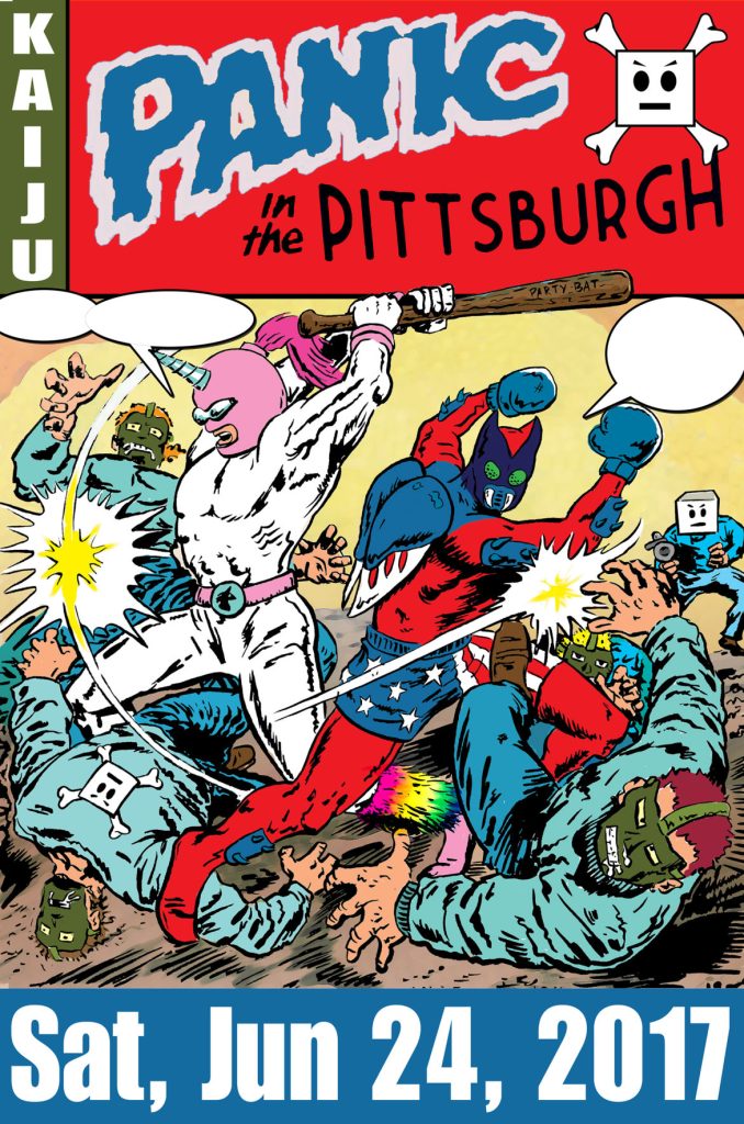 Some of the Kaiju are D.W. Cycloptopuss III ( across between Swamp Thing and an octopus), Powa Ranjuru (who looks like a little kid that couldn’t decide if they wanted to be a princess or a Power Ranger) and Kung-Fu Chicken Noodle (a giant can of chicken noodle soup that wields a hatchet).