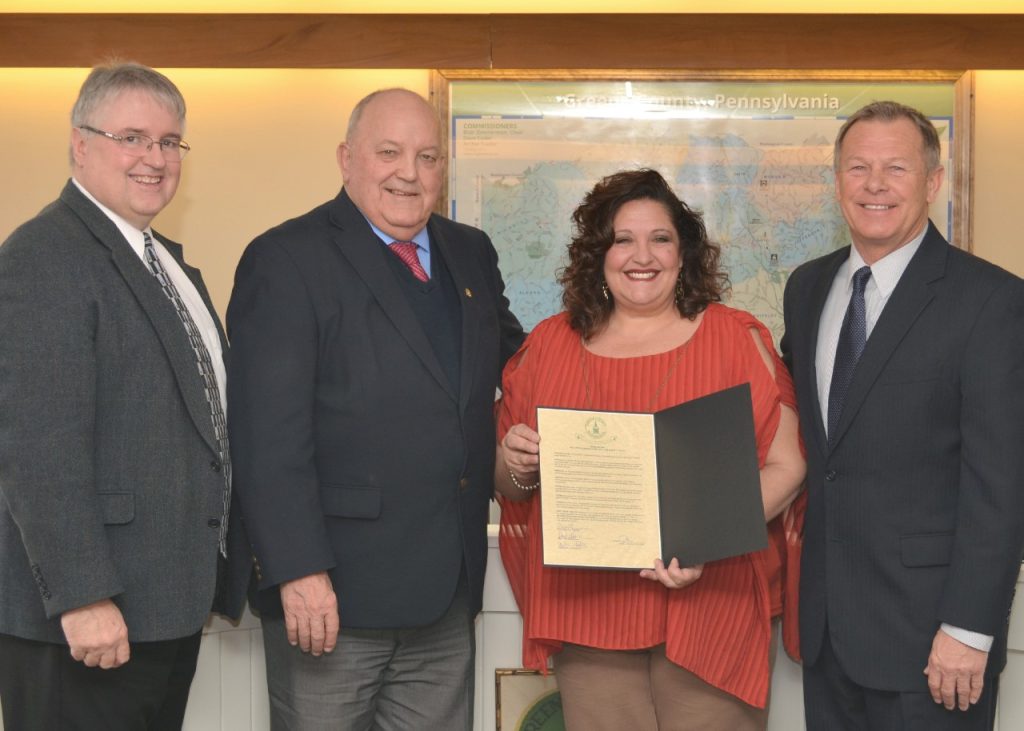 The commissioners also proclaimed the week of March 5 to 11 Multiple Sclerosis Awareness Week. The National Multiple Sclerosis Society, Pennsylvania Keystone Chapter, reports that more than 23,000 people in Pennsylvania are living with MS, and that the disease generally strikes people in the prime of life, between ages 20 through 50, and the cause and course of the often-debilitating symptoms of MS remain unknown and no cure currently exists.