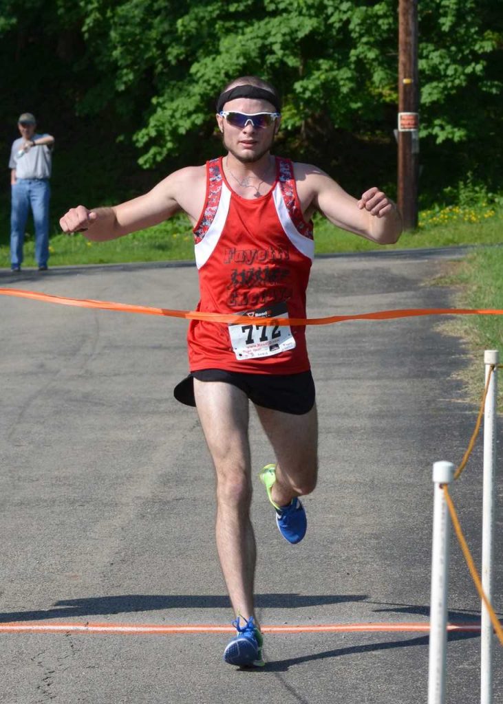 n Male: First place, Aaron Mylan, 19, of Rices Landing, 18:54; second place, Gabe McConville, 15, of Waynesburg, 19:32; and third place, John Koontz, 45, of Monongahela, 20:27.