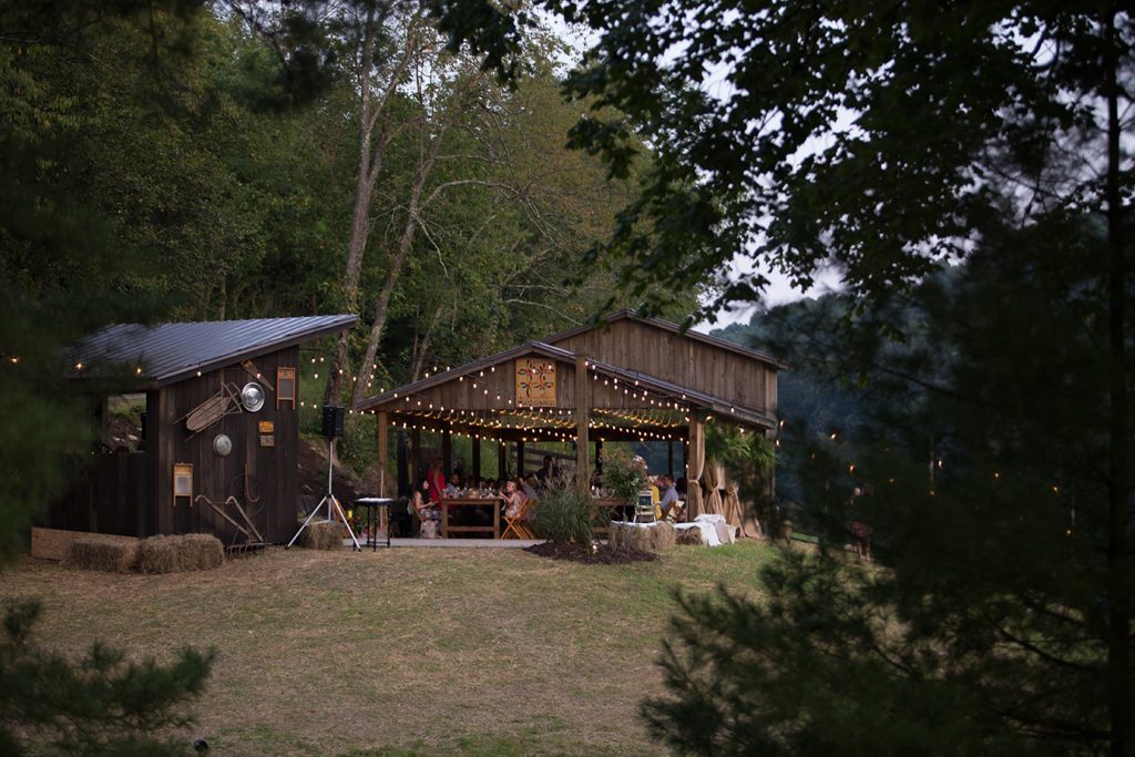 Additionally, they use the property to host events like weddings and showers. To host wedding receptions, a pavilion that accommodates between 70 and 100 people sits next to an open-air dance floor. For smaller events, there’s a fire pit surrounded by six porch swings. In the evening the area is lit by string lights.