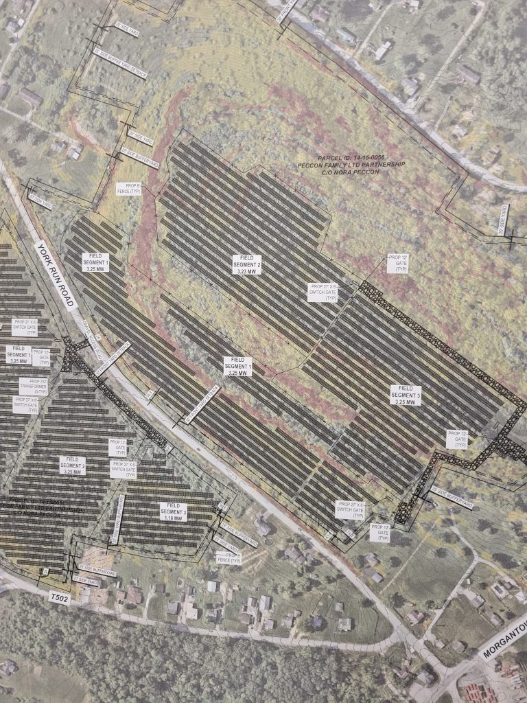 The solar farm would be located on two tracts of land straddling York Run Road in a residential area near Route 119, requiring the company to get a special exception in order to begin construction. The site is close to about 30 homes and Albert Gallatin High School, which has caused many in the area to oppose construction and place “NO! SOLAR FARMS” signs in their yards.