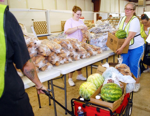 On Thursday, families received 10 pound bags of potatoes and sweet potatoes, grape juice, watermelons and canned goods, said Lawson.