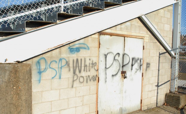 All of the graffiti included the letters “PSP.” Some also included swastikas, apparently racist statements, obscene comments and crude drawings.