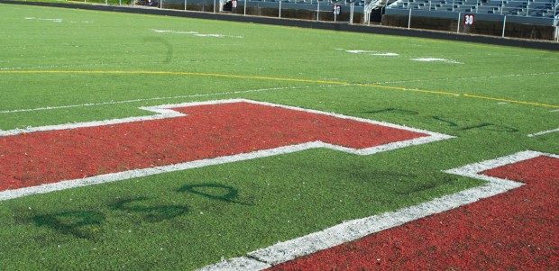 “It was primarily just some paint on the field and on the face of the press box and on the visitors’ side,” Machesky said. “They sprayed the turf. We called the crews to clean it up.”
