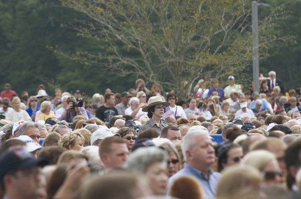 Despite the threat of rain, muddy parking areas and heightened security, thousands from across the country attended the Flight 93 National Memorial dedication ceremony, coming on foot or by bicycle, car and motorcycle.