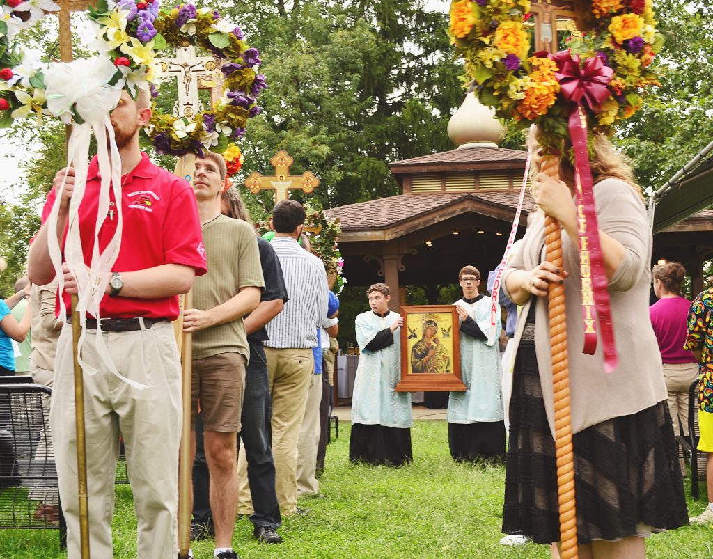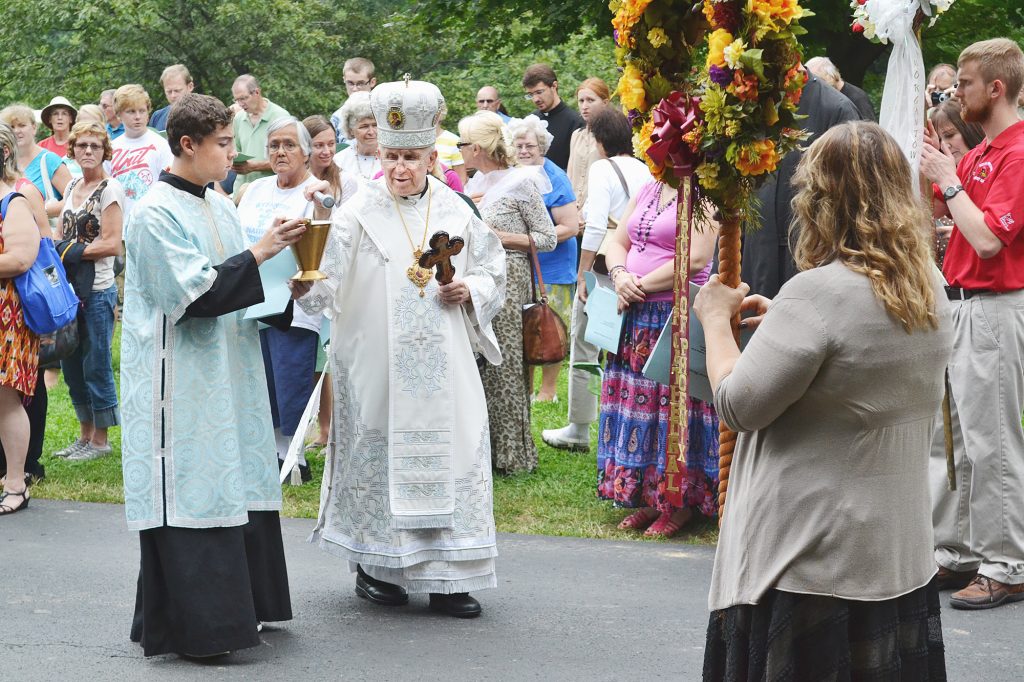 Morning activities included a procession with the Icon of Our Lady of Perpetual Help from the House of Prayer to the nearby Shrine Altar. The procession featured cross bearers who carry crosses decorated with flowers and ribbons, the Sisters of St. Basil and clergy that included Bishop John Pazak of Canada and Metropolitan Archbishop William C. Skurla of the Archeparchy of Pittsburgh, under which patronage the pilgrimage is held.