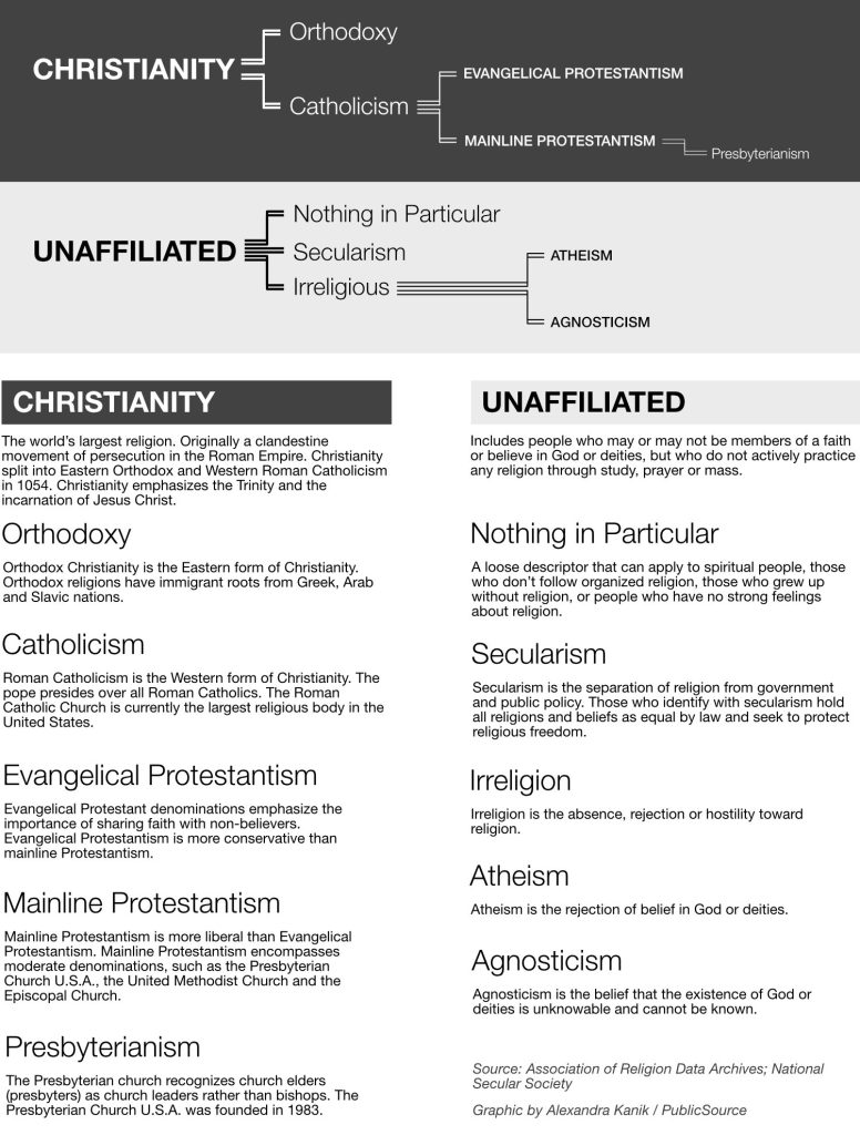 In the United States, the religiously unaffiliated make up the second-largest group after Christians. Seventy-two percent of the religiously unaffiliated are younger than 50.