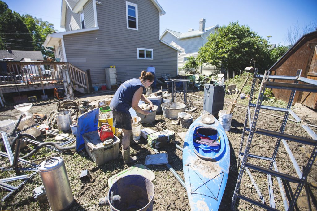The aftermath left residents shoveling through piles of mud to recover belongings and repair the damage. Among the suffering were the helpers, including organized volunteers and neighbors offering helping hands. One resident, Carol Kirk, did laundry for residents. Neighbors Salvia Leapline and Karen Snyder gathered their children to pass out sandwiches.