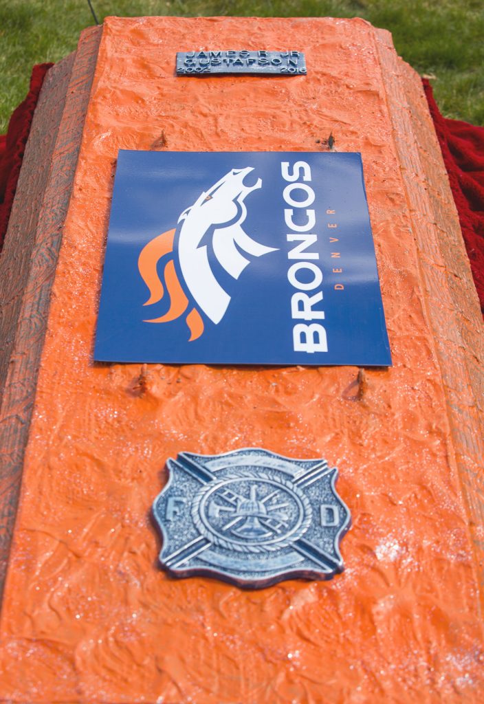His vault was painted for his favorite football team, the Denver Broncos, and was adorned with a firefighter’s emblem.