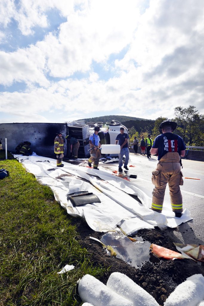 Medical helicopter, HazMat called to Route 40 rollover truck crash