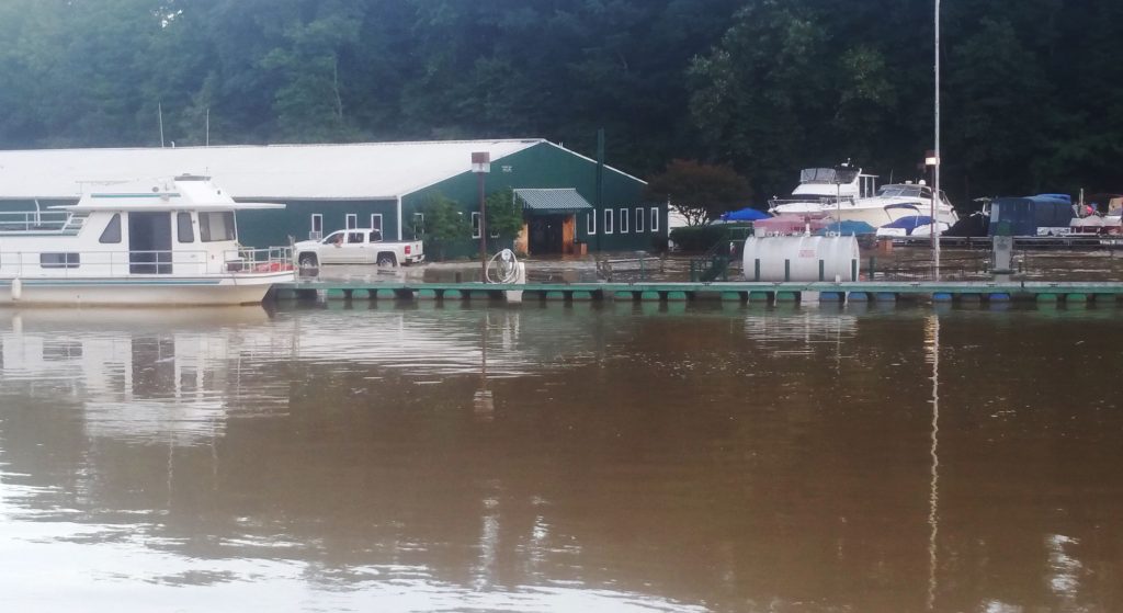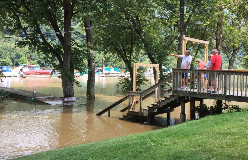 The July 29 storm dumped three inches of rain in the region with some areas receiving four to five inches of rain. Water levels of the Monongahela River rose quickly, and Redstone Creek spilled into Uniontown, causing brief evacuations.