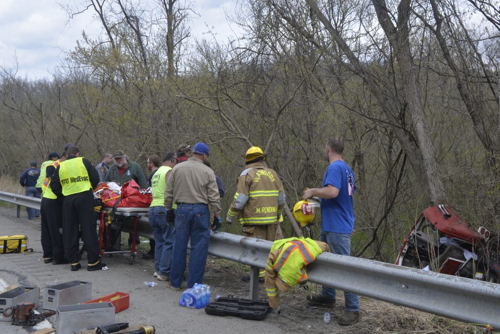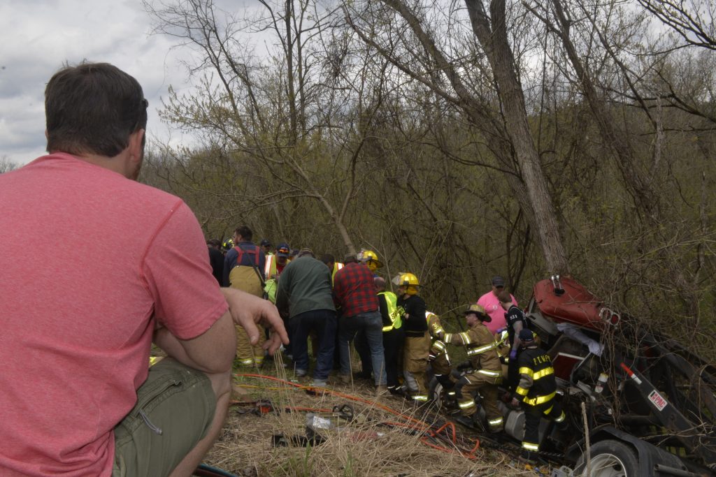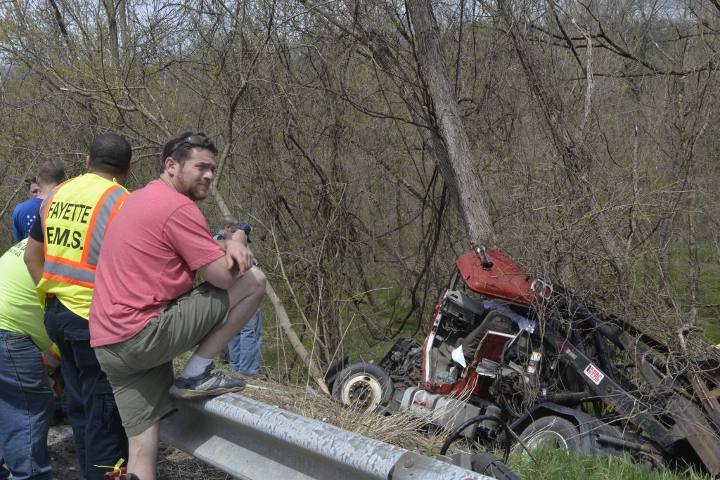 He watched attentively as Smock, Perry and Flatwoods fire crews worked to free Mills from the wreckage, and checked updates from Fayette EMS as they monitored his vital signs while his lower body was pinned in the truck. Finally, the man was freed.