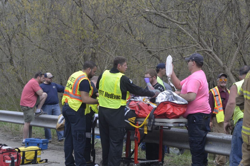 STAT MedEvac prepares to take off with Marvin Mills, 61, after he crashed along Route 51 Friday afternoon.