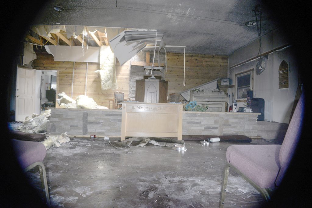 The damages were assessed at $150,000, according to Valerie Hall. The family found a place to stay temporarily. They are seeking monetary donations to cover gaps in insurance coverage for the total the loss. They recently put in new flooring, a roof and replaced the pews with chairs.