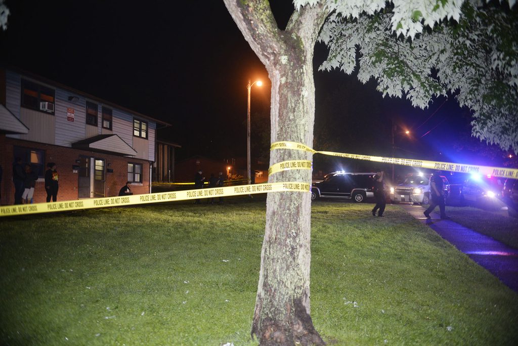 Police converged on the apartment Tuesday night, talking to possible witnesses within a large area of crime scene tape.