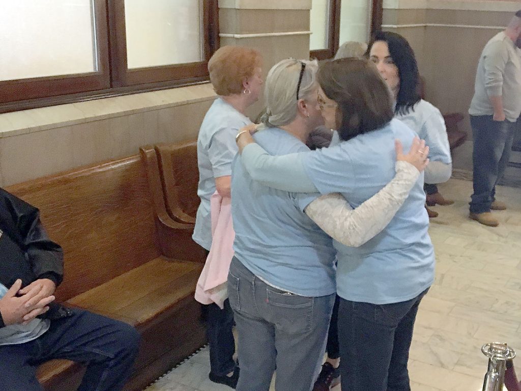 Around 30 supporters wearing blue shirts in support of sexual assault awareness sat in the courtroom, many of them friends and family of sexual assault victims. They, too, became emotional during the man’s testimony.