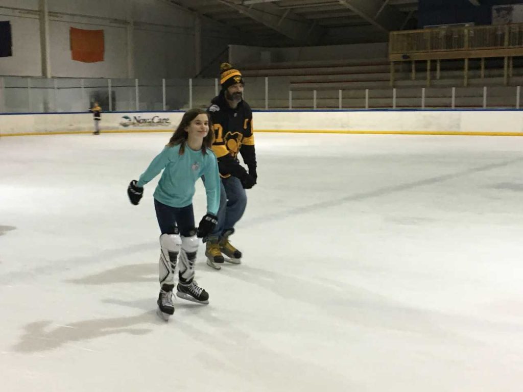 “We’re here every Friday and Saturday and she has Little Penguins,” said Ptacek as the father and daughter prepared to take to the ice.