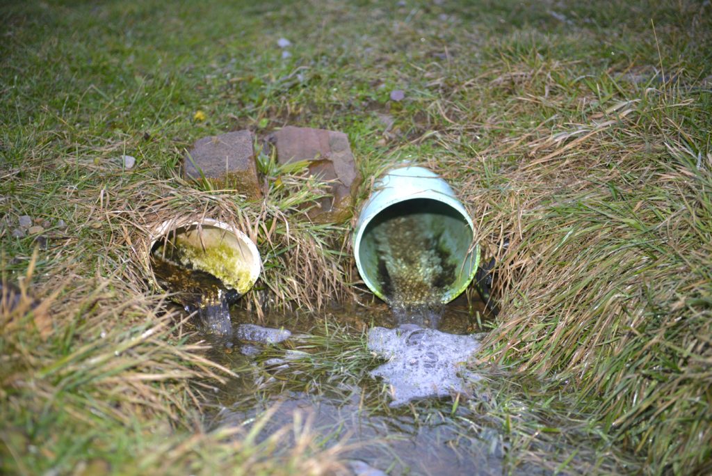 Water continuously flows from the pipe, regardless of the time of last rainfall, Hutchinson said. Without a tie-in to the storm drains on New Town Road, there is nowhere else for the water to go, he said.