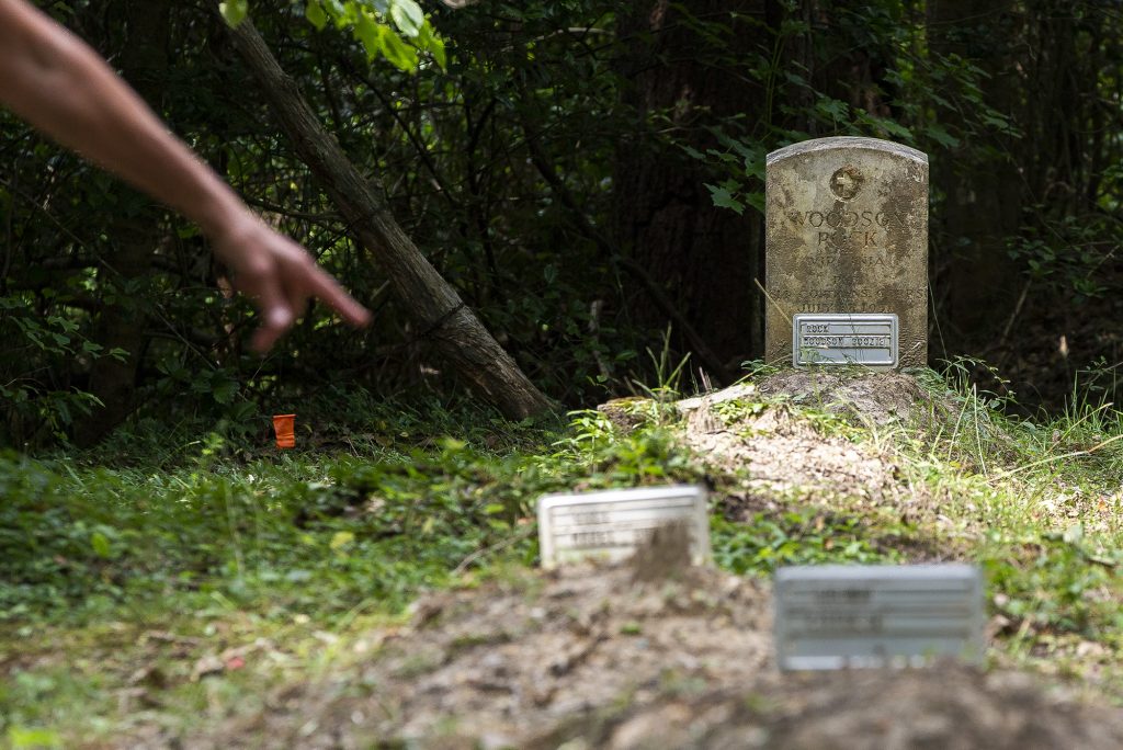 For now, though, the cemetery is mostly unmarked graves with roughly chiseled pieces of fieldstone at the unnamed person’s head and feet. Only a handful of stones have inscriptions; two were done by the government for veterans, including Woodson Rock, who lost part of his arm during service in World War I.