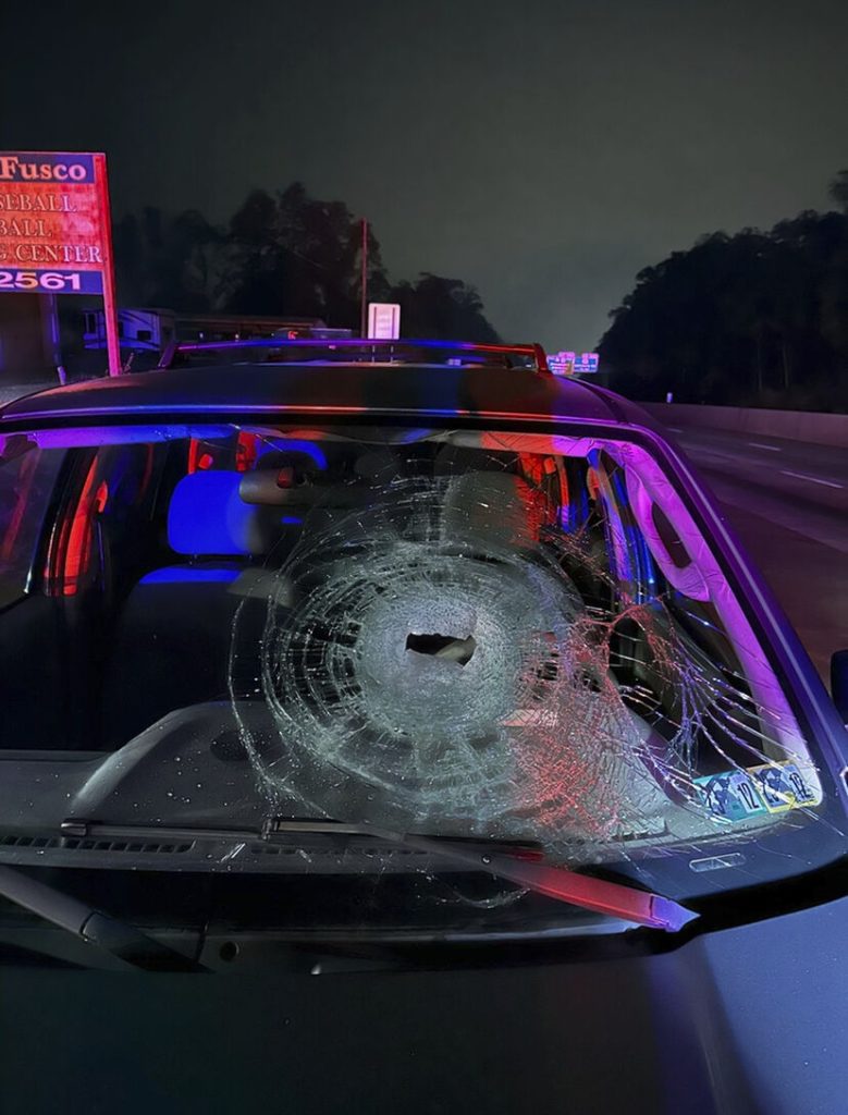 In one case, a victim was driving southbound on I-83 about 8 miles (13 kilometers) south of Harrisburg on Oct. 21 when a softball-sized rock crashed through the windshield, nearly hitting someone.