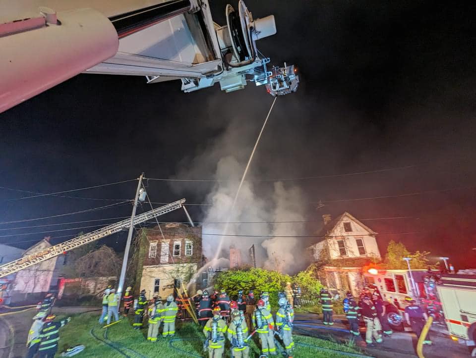 “I arrived to find a fully involved three-story wood frame starting into a three-story brick building,” Hepple said. “We were in defensive mode from the very beginning. When I say it got into the other building, I mean a little bit around the window and part of the roof. It was so intense that I’m surprised it didn’t take the whole block.”