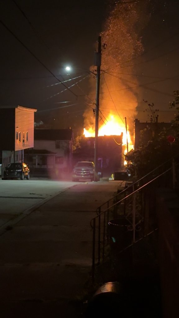 Flames and smoke filled the skies of Monessen early Sunday morning.[/caption