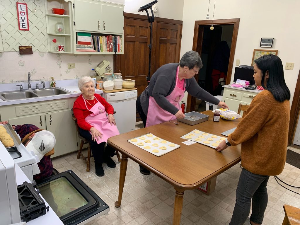 Like the many helping hands that lovingly bake dozens and dozens of cookies for local weddings or locally raised brides, it took many hands to prepare Magone for national television. The week leading up to filming was a whirlwind, Mgaone said, because she had to “redd up” her parents’ home – she decorated the kitchen for Valentine’s Day, when the bit aired – and prepare batter. The producers requested trays of both unbaked and baked cookies for before and after shots, and the morning of film day, Magone and friends spent plating cookies for the Today show crew.