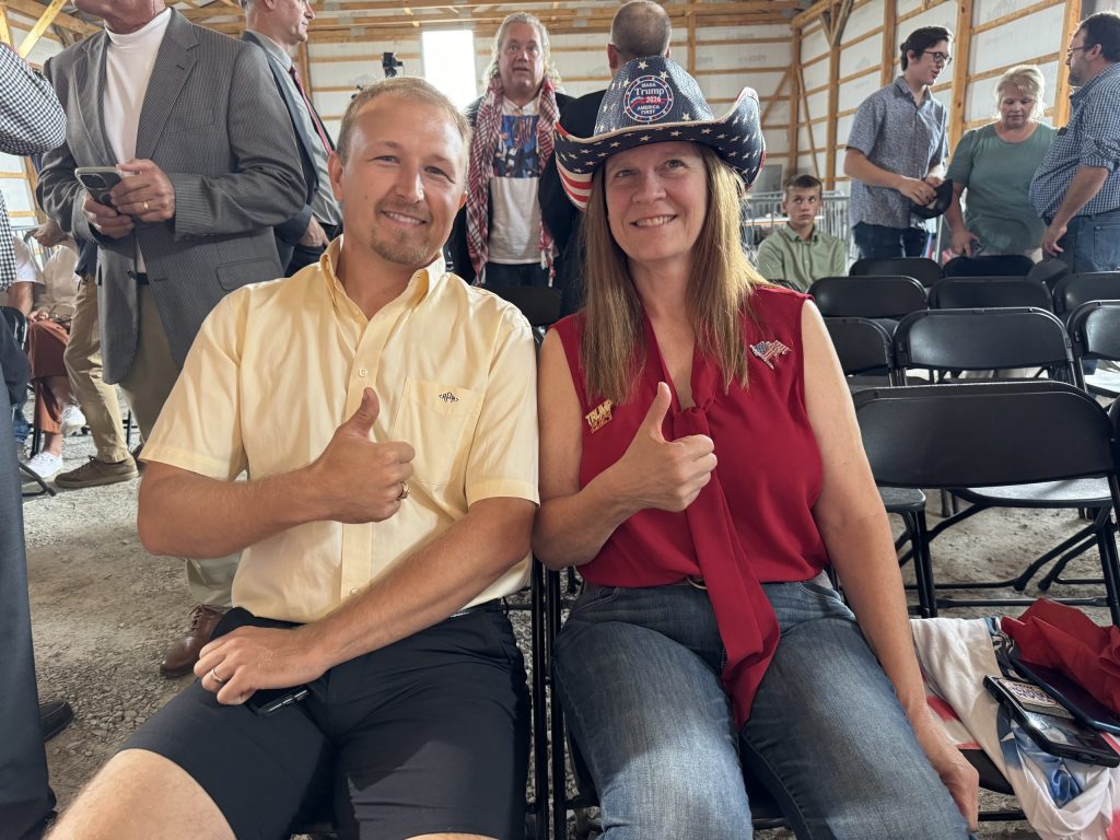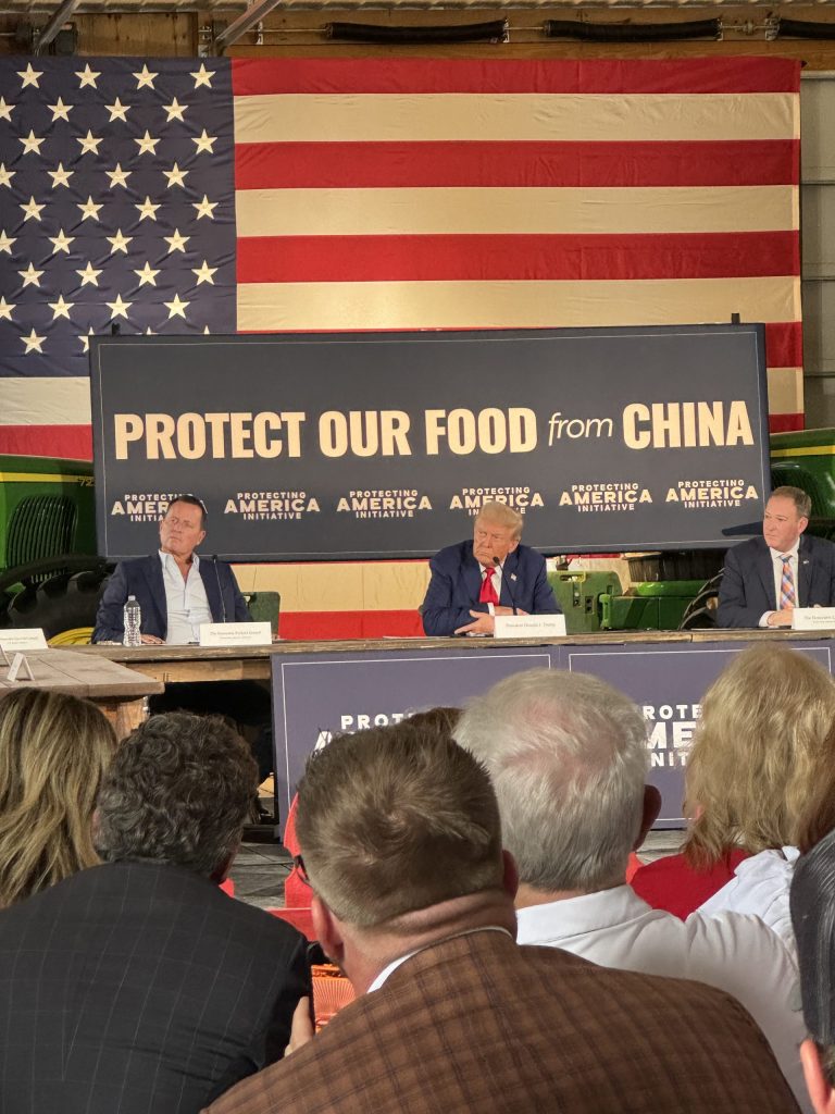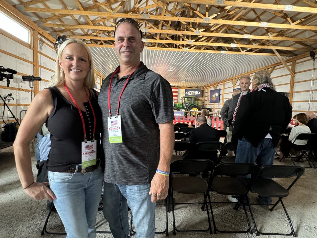 “When we heard (Trump) was coming this close, we knew we had to be here,” said Rose Joseph, who brought food – including beef from the farm – for staff, volunteers, and security and provided a John Deere tractor for the stage, which included a “Protect our food from China” sign and a large American flag.
