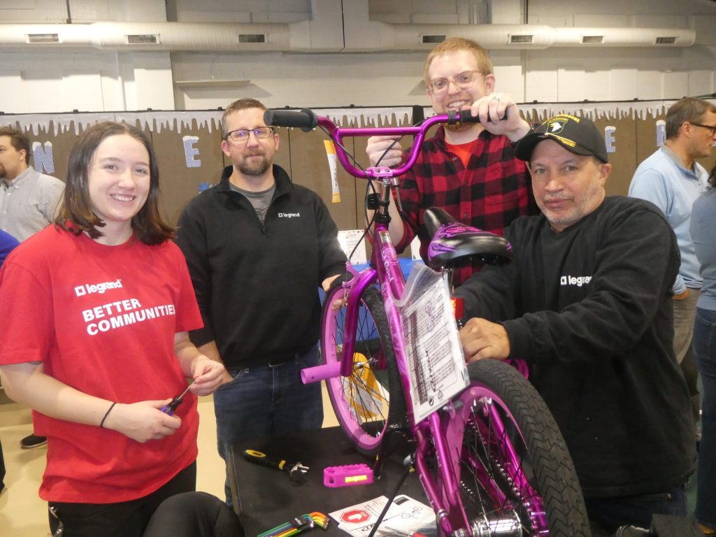 Legrand also had volunteers building bikes, including, from left: Alli Hastings, Adam Musingo, Greg Meilander and Larry Thompson.