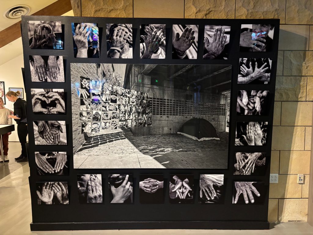 “We felt the inclusion of this wall displayed the stark reality of the challenges, harsh realities and bitter ends of those experiencing homelessness,” Powell said. “Through Matt’s vision, utilizing the 50 individual photographs displayed the continuum from the levity of life on the left to the humbling dark reality on the right of the continuum with the Memorial Wall.”