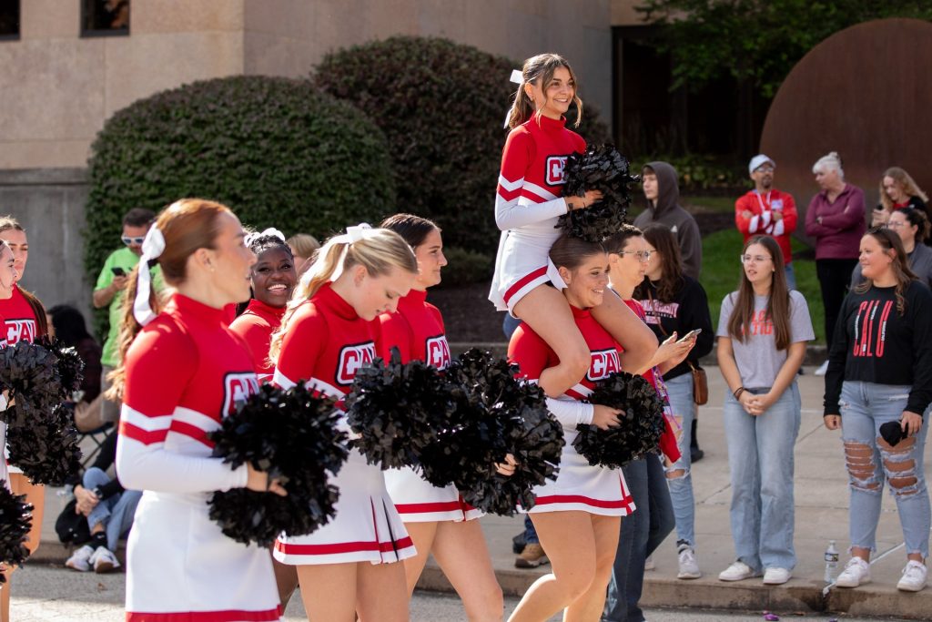 PennWest California cheerleaders add school spirit to the Homecoming parade.
