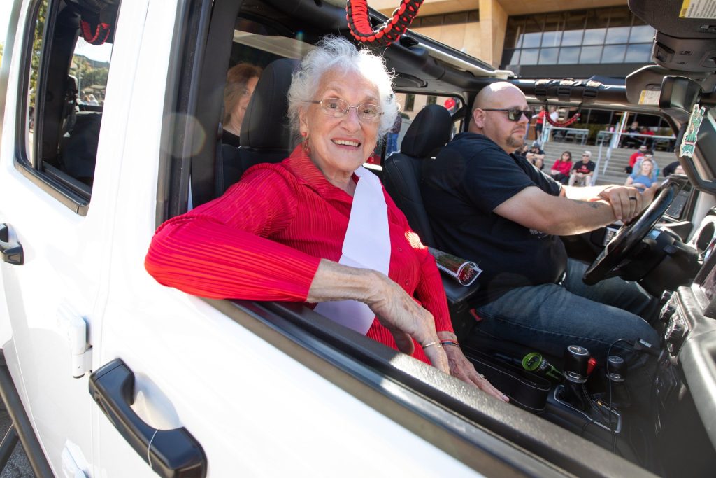 Dena (Morris) Shultz, of Waynesburg, the Homecoming Queen in 1957, returned to campus to participate in the 2025 Homecoming parade at PennWest California.