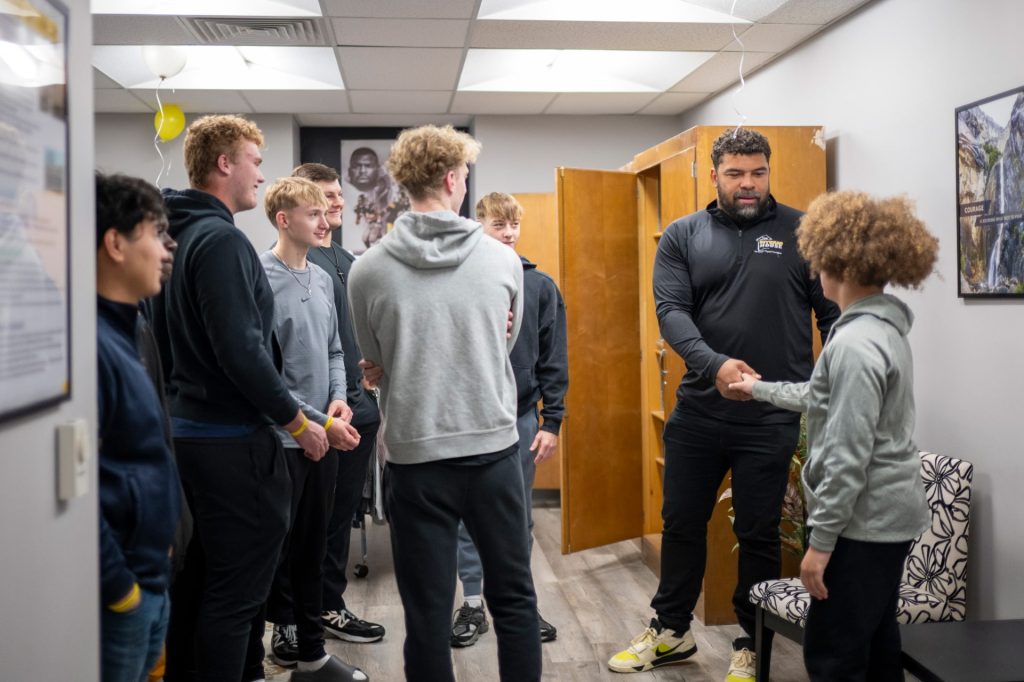 Heyward met with several Wash High students who have used and/or helped set up Craig’s Closet, and also was introduced to three Wash High students – seniors Alain Crawford, Joe Wilson and Jayden Nemeth – who have been selected as ambassadors for the Heyward House’s annual Suiting Up for Success Soiree.