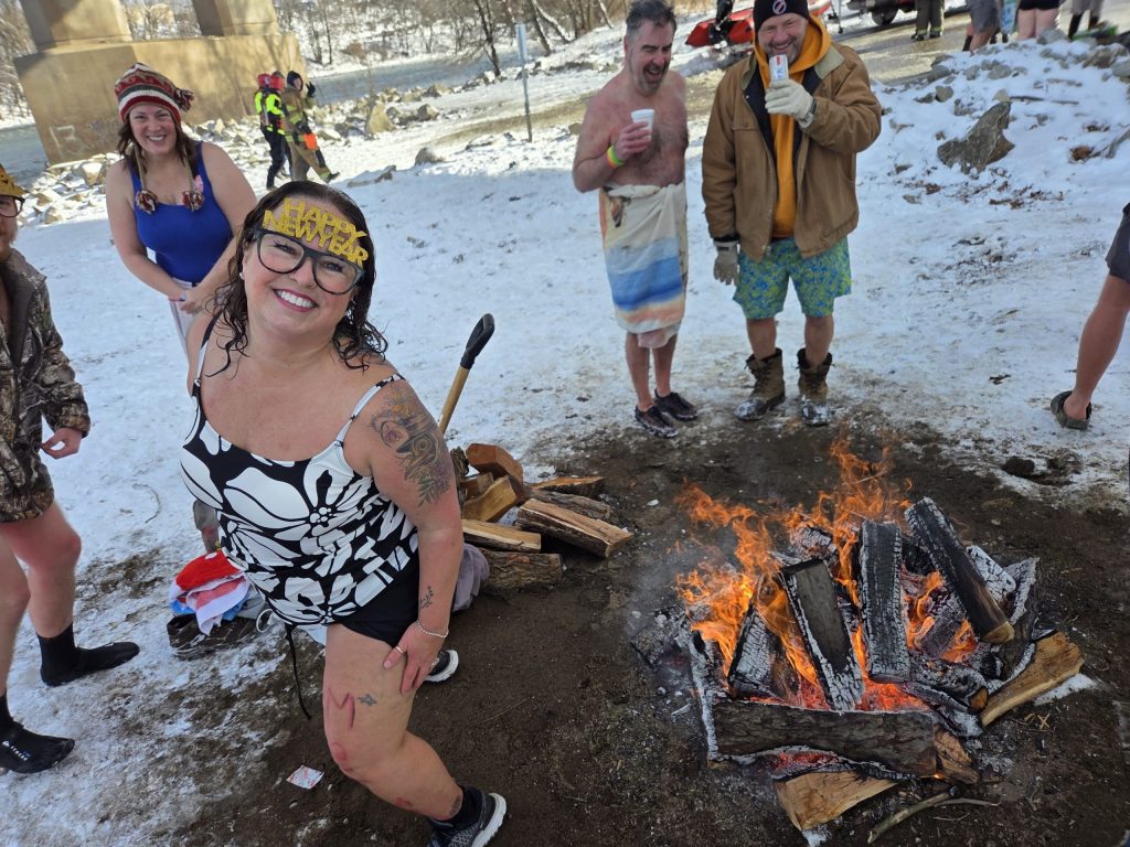 Event organizer Nancy Jacobyansky said this year’s plunge was one of the coldest on record, and many of the participants warmed up by a camp fire or quickly retreated to their cars.