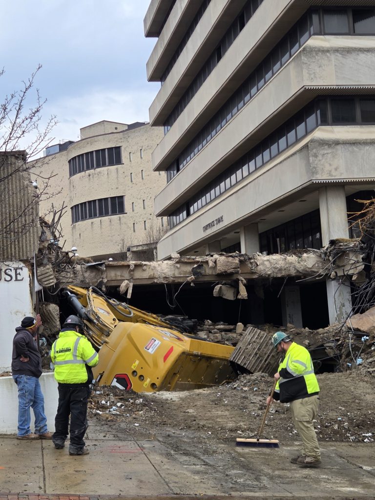The work to demolish the parking garage began Monday and was expected to continue for about a month before crews moved on to razing the six-story building that had been the county office building since the late 1970s. Now it’s unclear when the demolition project will resume or what additional safety measures might be put in place to ensure there is not another accident.