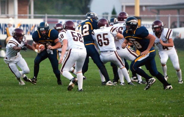 The Trojans (2-0, 2-0) got on the scoreboard in the first quarter when Tyler Conway connected on a 20-yard bubble screen pass to Sean Cotton. Nazareth Victoria kicked the PAT to make the score 7-0 with 3:56 left in the opening stanza.