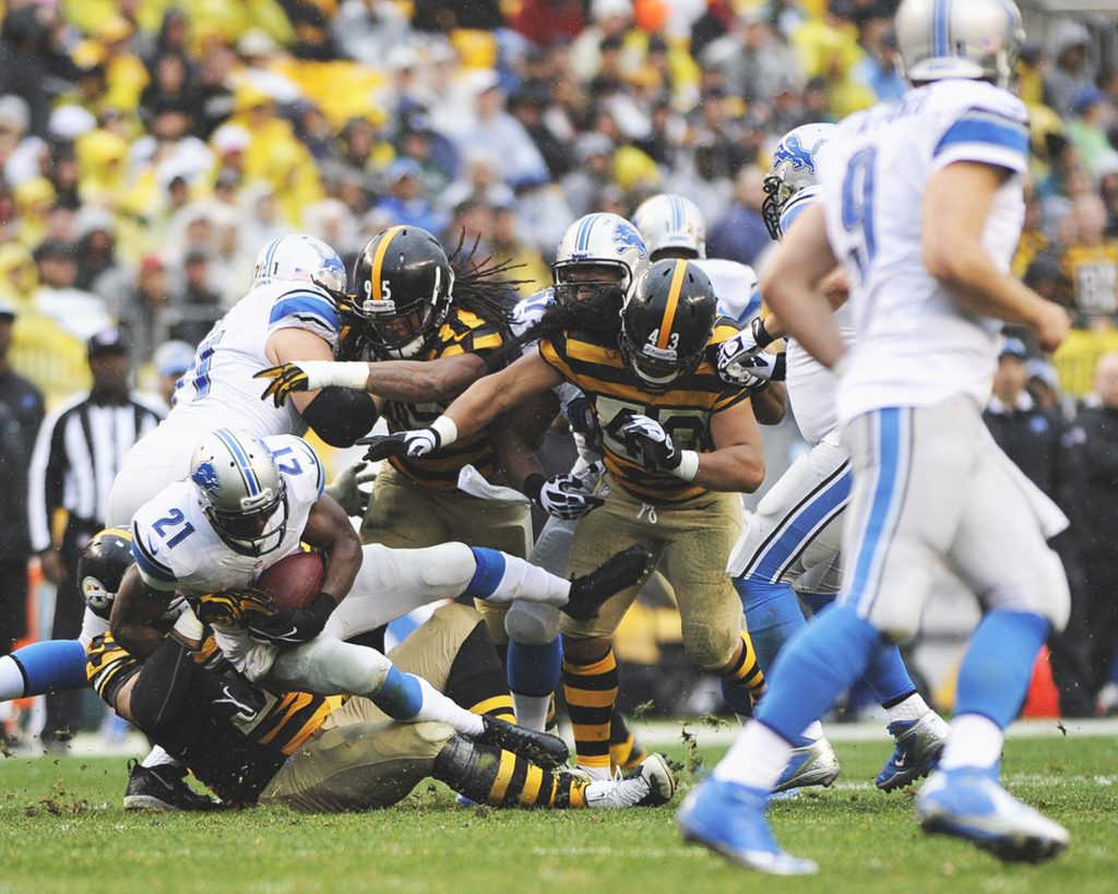 Detroit marched from their 20-yard line to the Steelers’ 5-yard line, but a fake field goal backfired when Ryan Clark recovered punter Sam Martin’s fumble at the 3-yard line. Steve McClendon caused the fumble.
